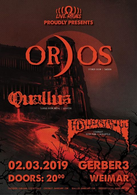 Nachdem sie auch schon auf ihrer letzten Tour in der Gerber waren, kommen Ordos ziemlich genau zwei Jahre später wieder nach Weimar! In der Zwischenzeit gab es einige Änderungen im Line-Up und das neue Album "The End" erscheint am 22. Februar! Stoner-Metal, Sludge, Geschrei, aber auch psychedelisch-bluesige Parts ... die Schweden wissen, wie sie eure Nacken am effektivsten malträtieren!