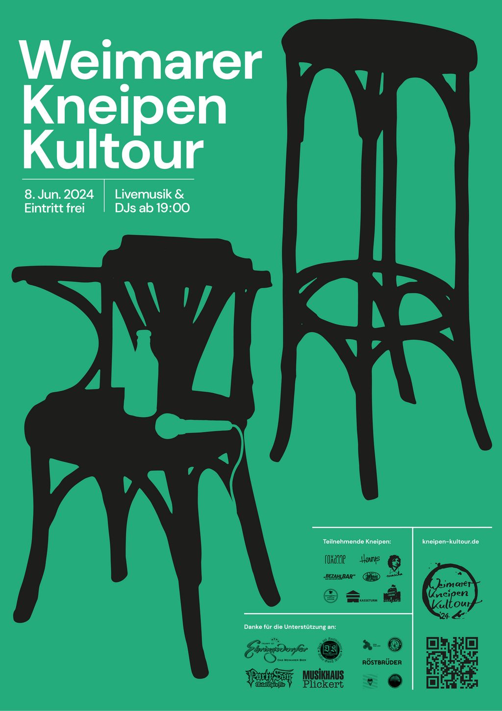 Ein Team aus Gastronom:innen und Subkultur-Fans hat die Weimarer Kneipen-Kultour ins Leben gerufen. Mehrere Kneipen und Locations schließen sich zusammen, um einen unvergesslichen Abend zu schaffen. Besucher:innen werden ein vielfältiges musikalisches Line-Up aus Livemusik und DJs zu hören bekommen. Ein Sammelspiel führt durch alle Locations und bietet verschiedene Gewinne. Der Eintritt ist frei.